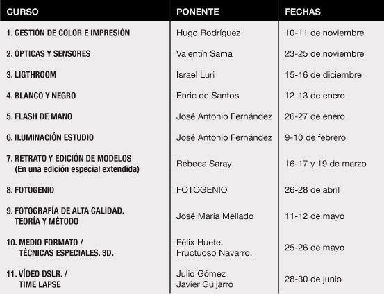 Para más información podéis ver la renovada web de Fotogenio, www.fotogenio.net dentro de la sección Fotogenio Formación. Y en la web de la UCAM en http://www.ucam.edu/estudios/postgrados/fotografia podéis iniciar el proceso de matriculación quien esté interesado.