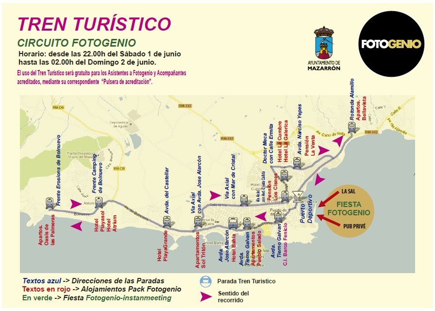 del domingo 2, para poder trasladarse hasta El Puerto Deportivo, donde se realizar� la Fiesta Fotogenio InstaMeet/Fototonic, frente a los pubs La Sal y Priv�.